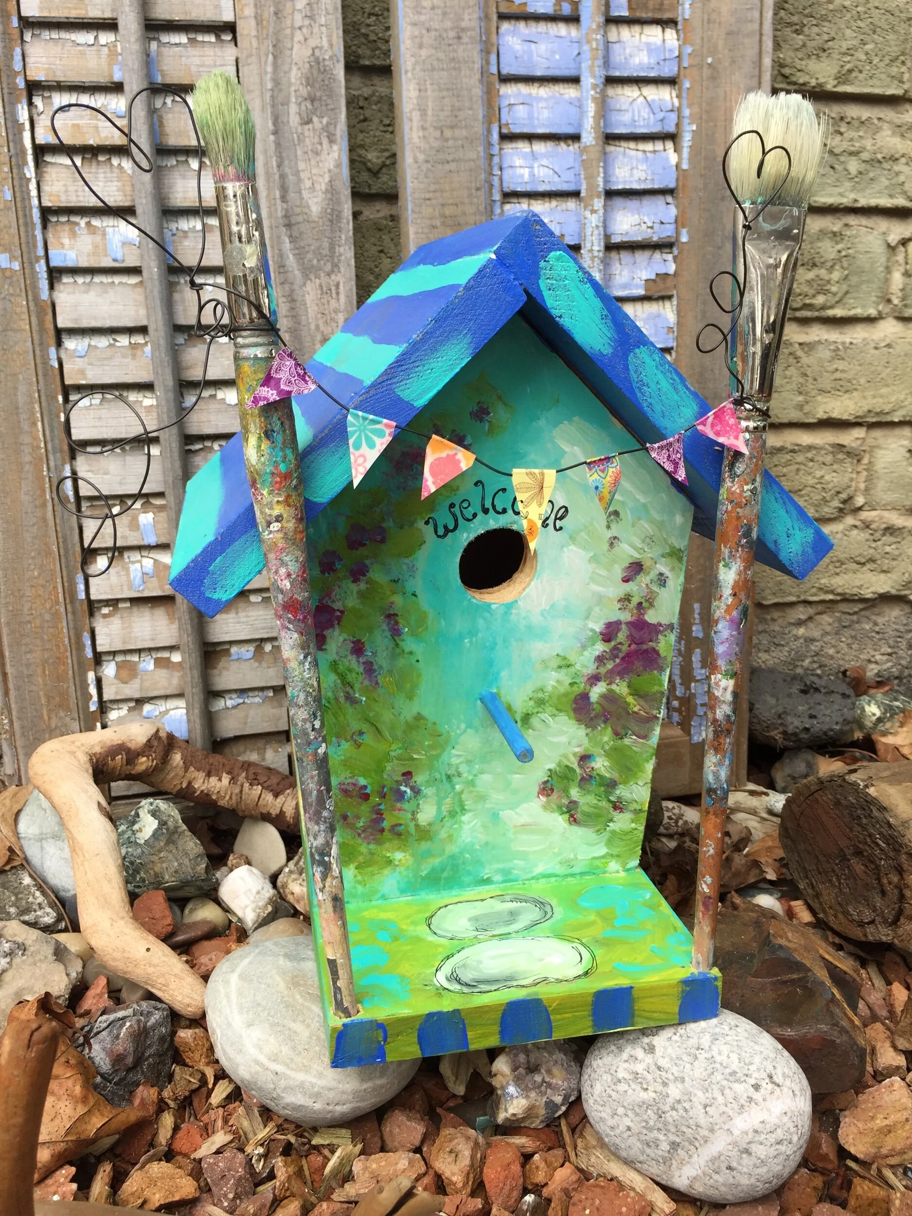 I don’t usually paint birdhouses with such enthusiasm and anticipation. I paint mixed media canvases… or sketch, and more recently flex my creative muscle with watercolours and illustrations… but back to the birdhouses!